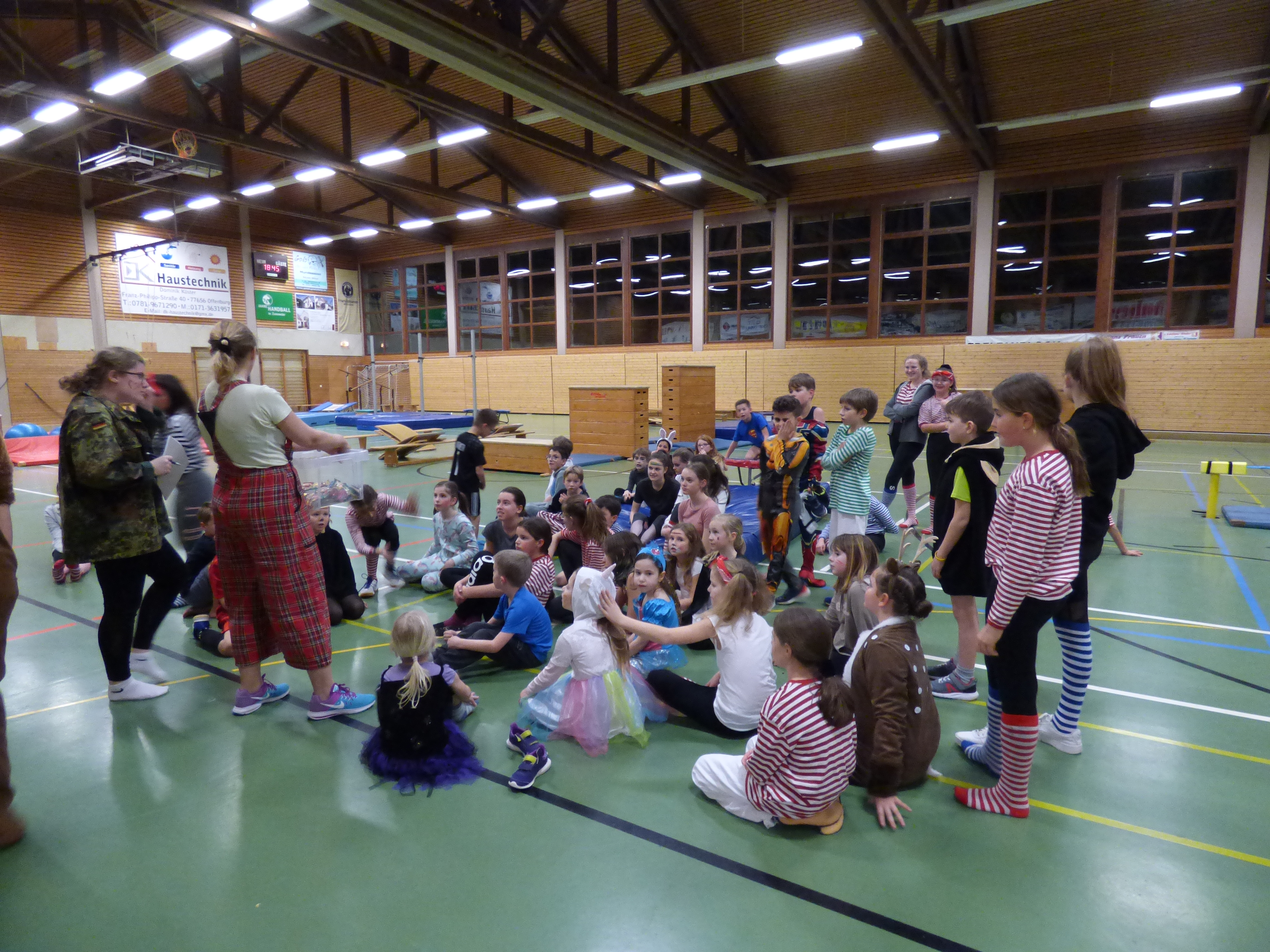 Am Freitag, 14.2. war in der Sporthalle in Zunsweier ein närrisches Treiben. Da waren Prinzessinnen, Action-Helden und allerhand Tiere zu sehen. Nach einem gemeinsamen Tanz, tobten sie sich nach Lust und Laune auf den Geräten aus. Dieses Jahr galt es hohe Hindernisse zu bezwingen, über das "Wasser" zu hangeln, die Balance auf Pezzibällen oder der Slackline zu halten oder aber einfach auf der Hüpfburg zu springen. Es war für jedes Alter etwas geboten! Und wie es sich für Fastnacht gehört, bekam jedes Kind am Ende der närrischen Turnstunde was Süßes.