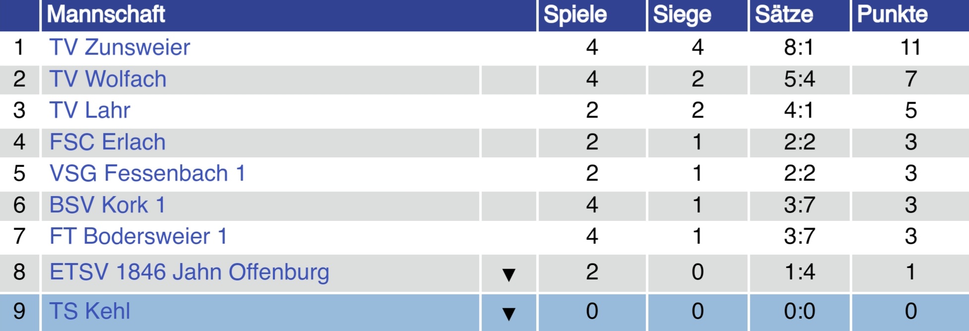 Das dritte Match fing recht ausgeglichen an, da die Bodersweirer Mannschaft besser zusammenspielte. Wir schafften es jedoch das Spiel zu dominieren und kamen zu keiner Zeit in Bedrängnis. So holten wir uns den zweiten Sieg mit 25:16 und 25:12 Punkten. Die erarbeiteten 6 Punkte an diesem Spieltag katapultieren uns auf den ersten Tabellenplatz. Nun müssen wir abwarten was unsere Konkurrenz abliefert, denn einige Mannschaften haben erst einen Spieltag absolviert.